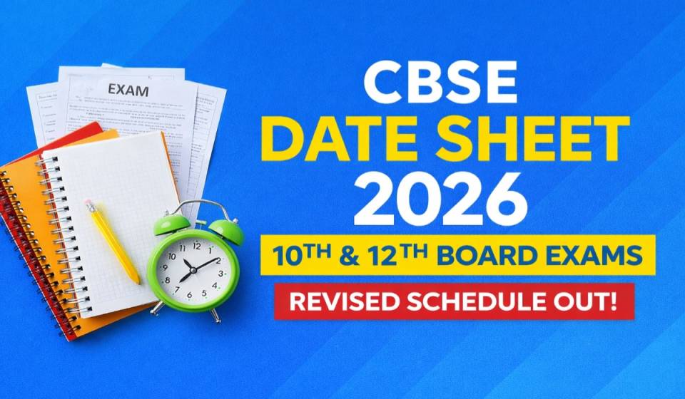 CBSE Date Sheet 2026: The Central Board of Secondary Education (CBSE) has officially released the revised date sheet for Class 10th and 12th Board Exams 2026. Students appearing in the CBSE Board Examination 2026 can now check the complete exam schedule on the official website www.cbse.gov.in.