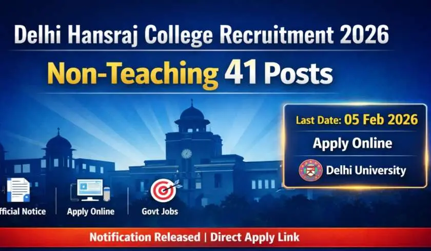 Delhi Hansraj College has officially released the Delhi Hansraj College Non-teaching Recruitment 2026 notification for Non-Teaching posts. A total of 41 vacancies have been announced. Interested candidates can apply online from 16 January 2026 to 05 February 2026.
